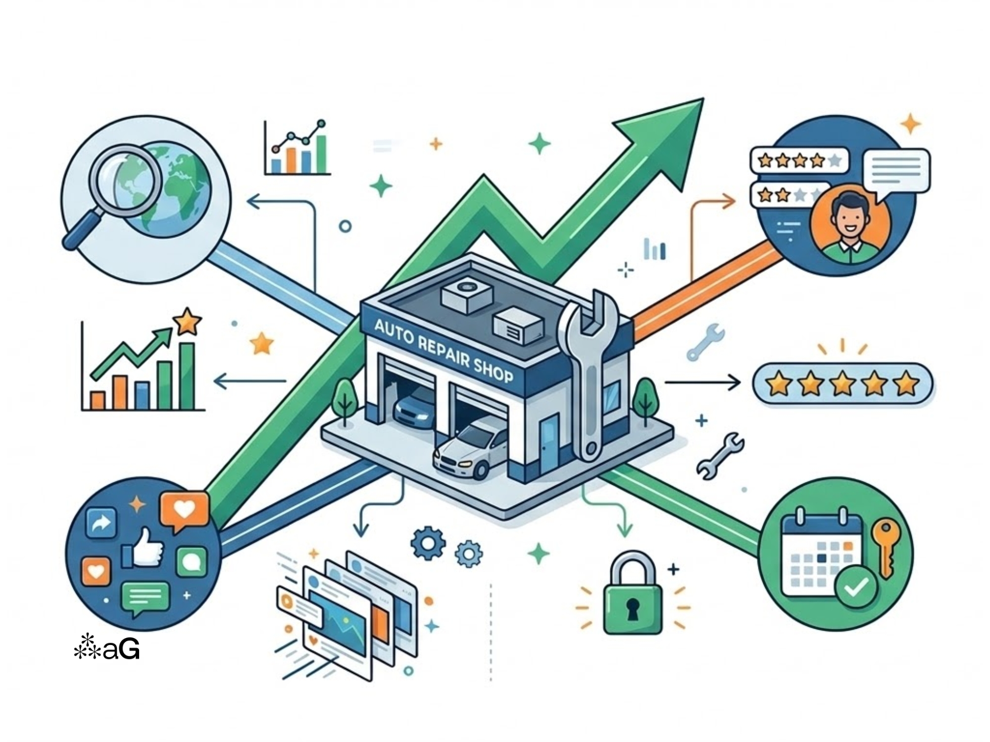 Auto repair marketing is the process of promoting your shop to attract new customers, convert them into bookings, and retain them over time. It combines strategies like SEO, local visibility, reviews, and follow-ups to create a steady flow of business.