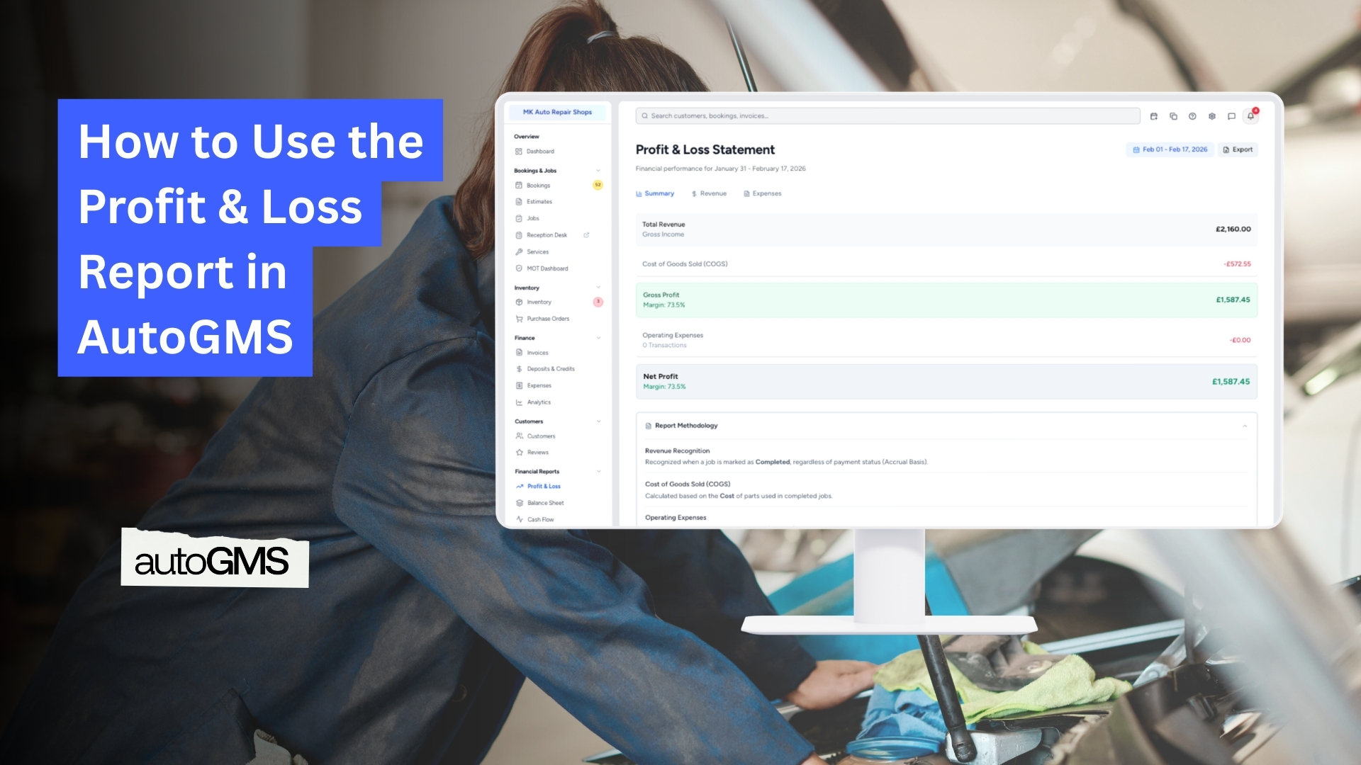 Learn how to use the Profit & Loss report in AutoGMS to track revenue, COGS, expenses, and net profit for better garage financial control.